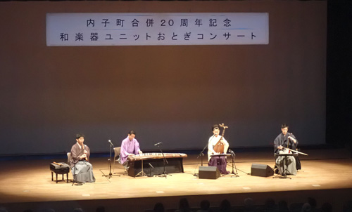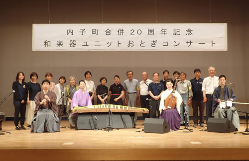 内子町合併20周年記念公演 2025年12月17日 最終更新日時 : 2025年12月17日 otogi 2025年8月3日 メンバーの折本慶太の故郷、愛媛県内子町にて 旧内子町、旧五十崎町、旧小田町の 3町合併20周年記念企画として おとぎコンサートを開催して頂きました。 ◆実行委員会の皆さんと記念撮影&打上げ↓ なお、内子町のシンボルともいうべき内子座は現在 保存修理工事中で、数年後の完成後には また内子座でコンサートを開催できればと希っています♪